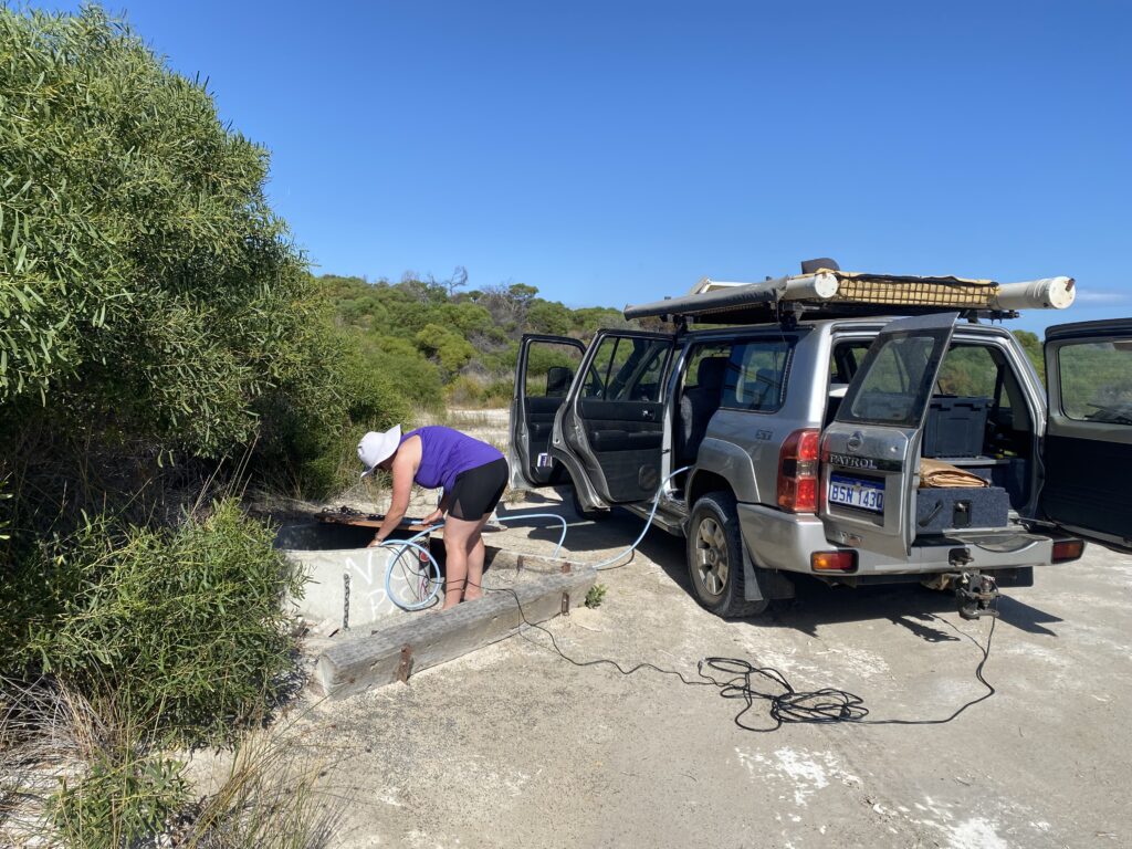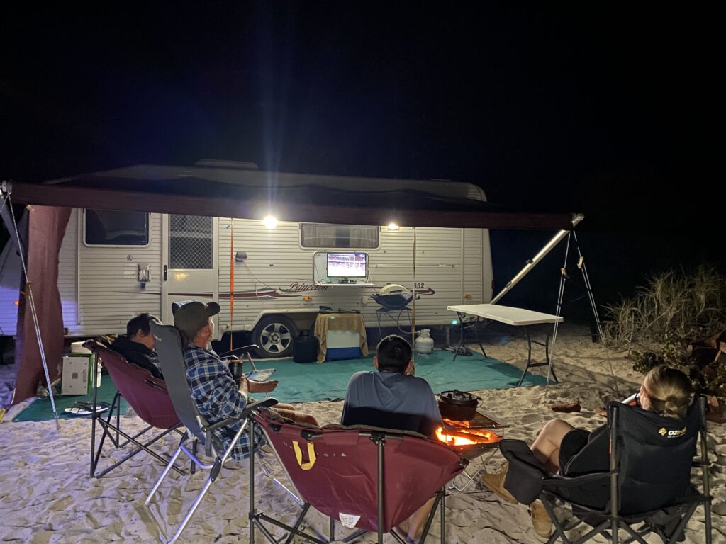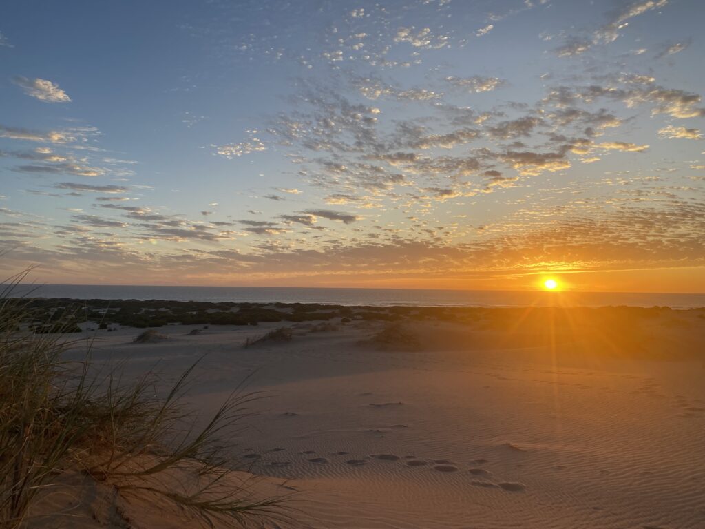 This year we caught up with family and friends who joined us for a few weeks. Lyn & Rowan, Cathy & Greg (with some of the extended family) and Zoe all stayed over our 4 weeks here. At one point, there were 4 caravans and a tent on our patch of paradise. We all enjoyed a quiet Easter together (yes the Easter bunny found us) on the beach, swimming, cooking on the fire, snorkeling, playing games, eating chocolate and hot cross buns, and obviously relaxing. Another day we took a day trip to Kalbarri to top up on a few supplies and have a meal at the pub. We didn’t spend too long there but will return shortly for a few days (everything will need to be de-sanded after 4 weeks sitting on a beach!). We also got to experience the solar eclipse. The sky dimmed and the temperature dropped. We tried taking photos but that didn’t really work. The good old fashioned hole in a piece of cardboard though, worked a treat. Another evening we drove up into the big sand dunes behind the camping areas. It is a fantastic spot to look over the bay and enjoy sunset. Pete has been very busy snorkeling while here, catching crayfish, cuttlefish and an octopus and spearing fish. We have had such a good array of seafood for dinner most nights. One day alone he caught 8 crays. We’ve spent so much time outside every day that apparently my skin now knows a third colour, brown (okay, think more of milky tea brown, but hey I’ll take it). Who would have thought these lily white limbs could change colour beyond the normal white or red, I certainly didn’t. Tropical cyclone Ilsa crossed the coast near Port Headland, and although didn’t affect us directly, we certainly felt the winds pick up over the few days before and after her crossing the coast. Only 2 years ago, we went through cyclone Seroja while here and that was certainly an experience we don’t want to go through again.